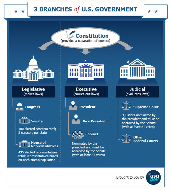 In the US, the three branches of government look like