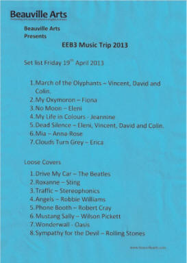 In the evening we had a photo shoot for the CD cover, which a small group of us designed. Then it was time for the final performance of our songs which was recorded on Camera and which was followed by a performance by Loose Covers (Mr Jones, Jonathan and Pascal) with Dan and the students filling in.