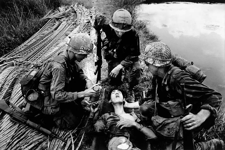 Larry Burrows- Compassionate Photographer, which was published posthumously, is only partly devoted to Vietnam. It throbs with life and humanity. It is interesting to see the difference between an early story, 'Yankee Papa 13', which he shot near Danang in 1965 and which, like Duncan's book, is concerned with courage and fortitude (a young marine risking his life for a buddy and crying to see the futility of his actions), and Burrows’ later work in Vietnam. His superb colour photographs of the fighting in the Mekong Delta in 1968 are much more pessimistic and grim.