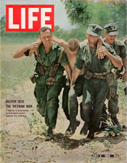 There were other aspects of the coverage of the war in Vietnam which made it unique. The growing trend towards more violent images has already been noted in our discussion of the civil wars in Bangladesh and Lebanon. Its gestation period, indeed its birth, took place in Vietnam. Because of the U S A's involvement in the war, the American media market - the largest in the world - of magazines, periodicals, newspapers, books and television provided the widest platform ever for the publication of pictures of the war throughout its long duration. The public became satiated on a strong diet of war images, and the press responded by providing a stronger fare of yet more violent imagery to satisfy their audience, seemingly hungry for greater thrills.