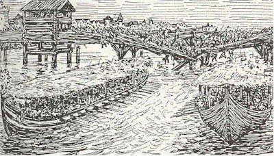 bridge-pillars and rowed, with all their might, downstream. Olav's plan